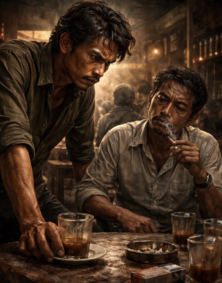 Sebelum pergi, kulihat lagi gelas di meja. Ampasnya mengendap di dasar. Tak pernah naik, tak pernah tumpah. Hanya menunggu dibuang. Dan untuk pertama kalinya aku sadar: bukan kopi yang pahit hari itu—melainkan manusia yang memilih menjadi ampas.***