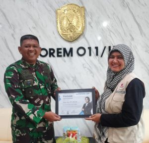 Wartatrans.com, ACEH UTARA — Komandan Korem (Danrem) 011/Lilawangsa, Kolonel Infanteri Ali Imran, menyerahkan piagam penghargaan kepada aktivis kemanusiaan Mutia Sari, Senin, 5 Januari 2025. Penghargaan tersebut diberikan atas dedikasi Mutia yang konsisten terlibat dalam kerja-kerja kemanusiaan sejak bencana melanda Aceh.