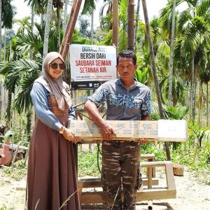 Penyaluran bantuan tersebut meliputi sejumlah kebutuhan penting, di antaranya mesin celup pompa air untuk mendukung pembangunan sumur bor ke-10 di Dusun Selmak. Bantuan ini merupakan donasi dari para dermawan yang tergabung dalam “Saudara Seiman Setanah Air”, sebagai upaya memperkuat akses air bersih bagi masyarakat setempat.