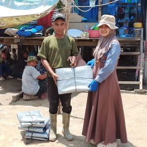 Selain itu, bantuan berupa terpal berukuran 6×4 meter juga disalurkan kepada 9 Kepala Keluarga (KK) di Dusun Tanah Merah. Namun, jumlah tersebut masih jauh dari kebutuhan total yang mencapai 24 KK. Terpal tersebut merupakan sumbangan dari para donatur yang disebut sebagai “Hamba Allah”.