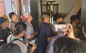 Merasa dihalangi, para pemburu berita melakukan aksi melepas kartu identitas dan dijajarkan di lantai. Seorang Wartawan senior dari Semarang yang tak mau ditulis namanya menggerutu, “Sukirman itu pernah jadi Wartawan dan kini Plt Bupati, harusnya dia tahu fungsi Pers !”