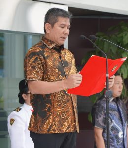 Direktur Utama Pelindo, Arif Suhartono, bertindak sebagai Inspektur Upacara dan membacakan amanat Presiden Republik Indonesia, Prabowo Subianto.