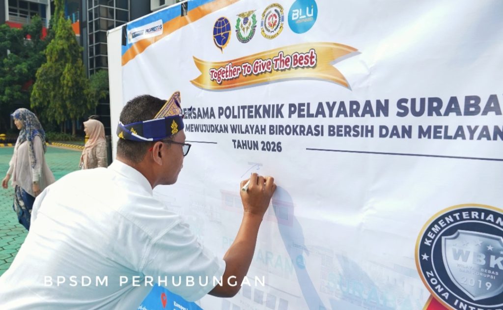 Wartatrans.com, SURABAYA – Dalam mewujudkan wilayah birokrasi yang bersih, akuntabel dan melayani, Politeknik Pelayaran (Poltekpel) Surabaya tandatangani komitmen bersama bangun Zona Integritas (ZI) Wilayah Bebas dari Korupsi (WBK) menuju Wilayah Birokrasi Bersih dan Melayani (WBBM).