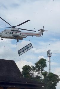 Kejadian tidak terdugapun terjadi. Putaran baling – baling helikopter menciptakan hembusan angin kencang sehingga memporak porandakan puluhan lapak pedagang.