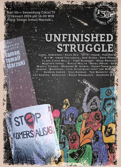 Wartatrans.com, JAKARTA — Sejumlah peseni dan seniman lintas genre akan kembali menggelar aksi moral bertajuk #SaveTIM dalam rangkaian Unfinished Struggle Seri Tiga: “Senandung Cikini 73”, Sabtu, 17 Januari 2026. Aksi ini dijadwalkan berlangsung mulai pukul 16.00 WIB hingga selesai di Plaza Taman Ismail Marzuki (TIM), Jakarta Pusat.